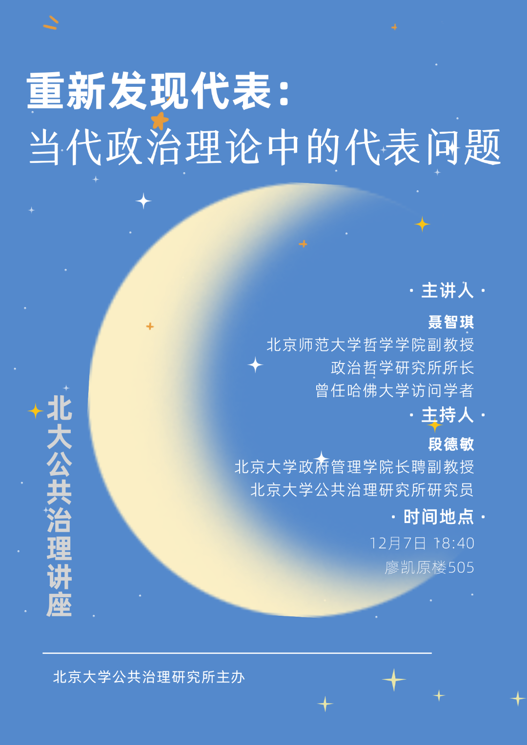 博士毕业于中国人民大学,现为北京师范大学哲学学院副教授,政治哲学研究所所长,曾任哈佛大学访问学者,主要研究领域为西方政治哲学与民主理论,著有《代表理论:问题与挑战》(第一编者)《政府:笼子里的利维坦》等,另在《Diogène》《开放时代》《读书》等国内外学术期刊发表论文多篇。