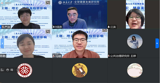 On April 24, with the support of the Institute of Public Governance of Peking University, the health governance research team held an online seminar on "growth, health and the impact of the epidemic". Liu Guoen, a member of the national COVID-19 expert group and President of the Institute of global health development of Peking University, delivered an academic speech entitled "human health and economic growth". Nearly 300 teachers and students participated in the salon. The event was presided over by Associate Professor Yan Jie, vice president of the school of government management of Peking University and deputy director of the Institute of public governance of Peking University.