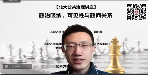 On May 26, with the support of the Institute of Public Governance of Peking University, the Peking University Public Governance lecture "political absorption, visibility and political business relations" hosted by the national governance modernization research team was held online. Yang Feng, assistant professor and researcher of Peking University Social Research Center, delivered an academic speech, and more than 150 teachers and students participated in the lecture. The lecture was presided over by Zhang Changdong, researcher of the Institute of public governance of Peking University.