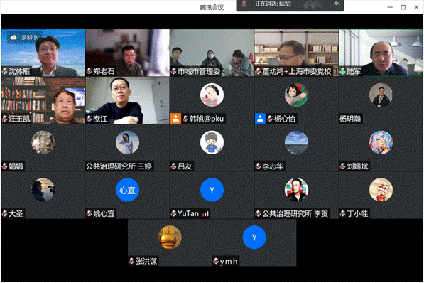 3月25日上午,在北京大学公共治理研究所和北京大学政府管理学院共同支持下,现代城市治理研究团队举办的“‘一网统管’城市治理创新模式及其理论基础”专题研讨会在线上召开。北京大学政府管理学院副院长、公共治理研究所研究员陆军,北京市城管委网格办主任杜娟,中央党校(国家行政学院)教授汪玉凯,复旦大学国际关系与公共事务学院教授郑磊,上海市“一网统管”城市数字治理实验室主任董幼鸿,广东数字政府研究院执行院长余坦,北京市城市管理综合行政执法局科信中心主任宋刚,北京市城管委网格办副主任任玉霞以及北京大学政府管理学院助理教授、公共治理研究所研究员张洪谋,北京大学建筑与景观设计学院研究员许立言等参加研讨会。会议由北京大学政府管理学院教授、城市治理研究院执行院长、公共治理研究所研究员沈体雁主持。
