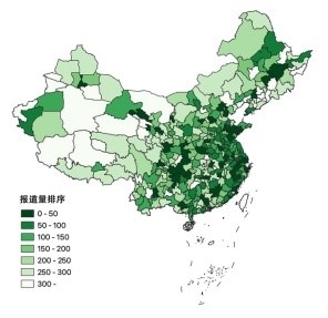 研究发现,全国数字乡村建设呈现出东部领先、中部跟随、西部和东北地区局部突出的特征。在本次评估所选取的主流媒体中,数字乡村相关报道量位列全国前50位的22个位于东部地区,11个位于中部地区,14个位于西部地区,3个位于东北地区;位列 50-100位的22个位于东部地区,16个位于中部地区,8个位于西部地区,4个位于东北地区。值得注意的是,西部地区虽然整体经济与科技发展水平滞后于中东部地区,但在数字乡村这一新的建设领域呈现出追赶姿态,特别是贵州、广西、陕西、甘肃四省取得了相对较多的建设成果。
