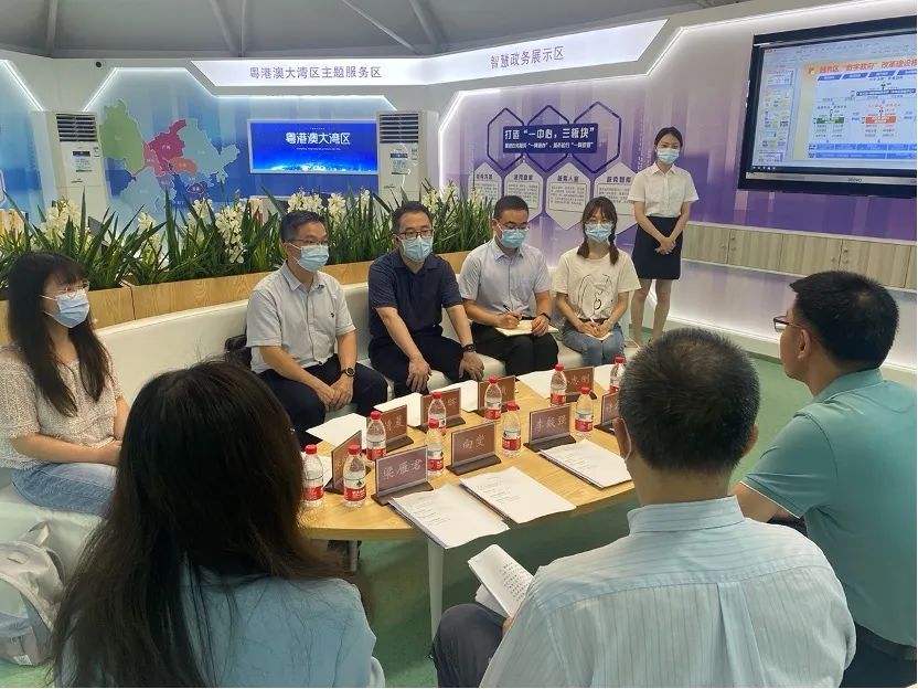 7月7日下午,调研组一行到访广州市越秀区政务服务数据管理局,双方就广州市越秀区一网通办、一网统管和一网协同建设情况展开交流座谈。越秀区政数局局长李毅强、副局长向燮、政务服务科科长许剑辉、越秀区电子政务办副主任梁雁君、广东省人民政府发展研究中心刘春晖出席座谈会。