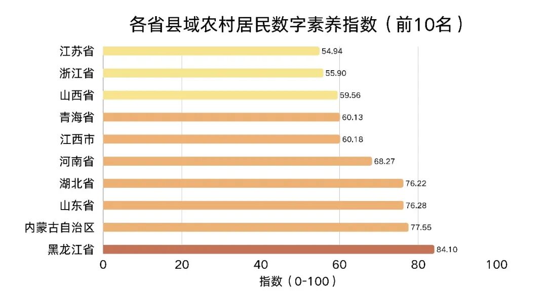 从省级加权结果看,各省份的县域农村居民数字素养指数呈现较清晰的梯度格局: