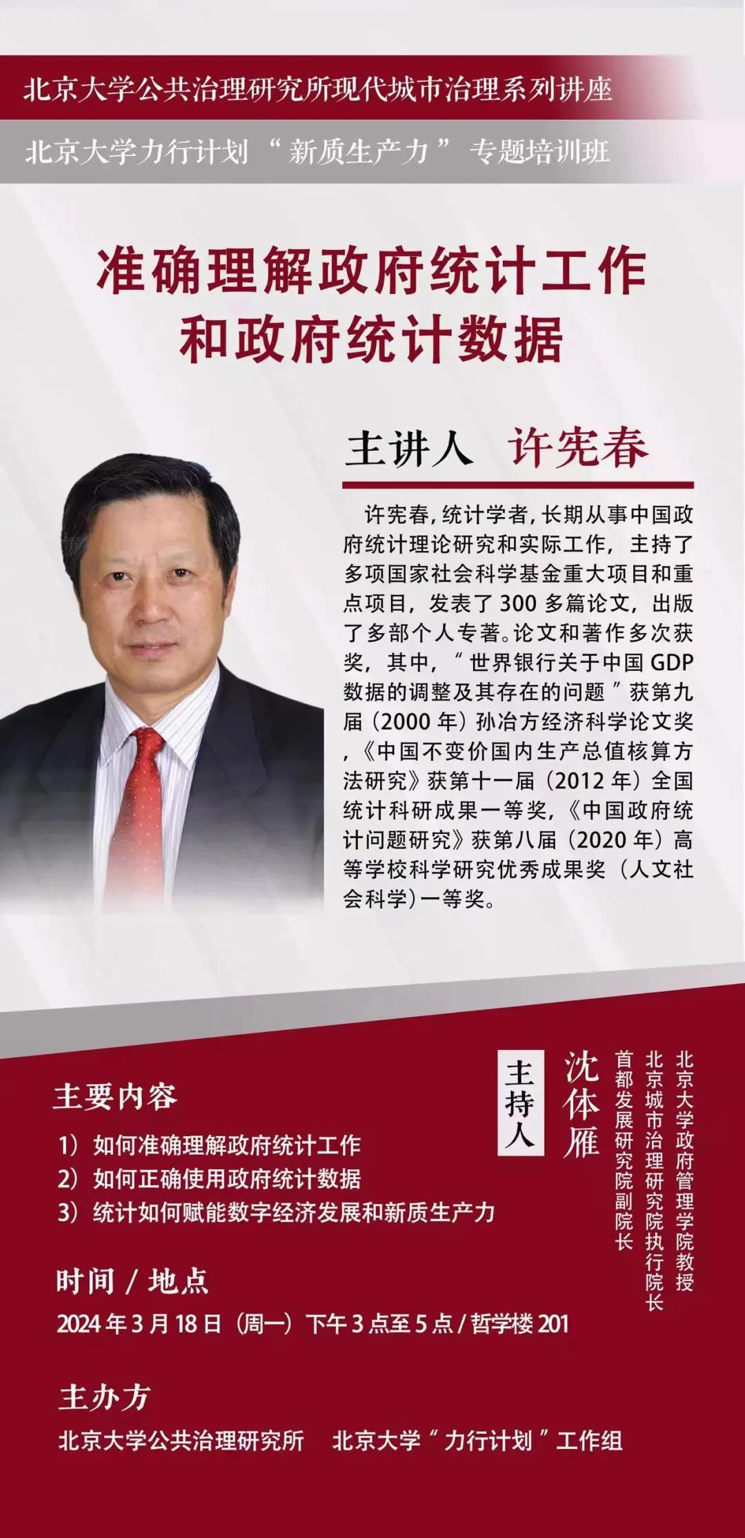 预告【北大公共治理讲座】许宪春 | 如何准确理解政府统计工作和正确使用政府统计数据