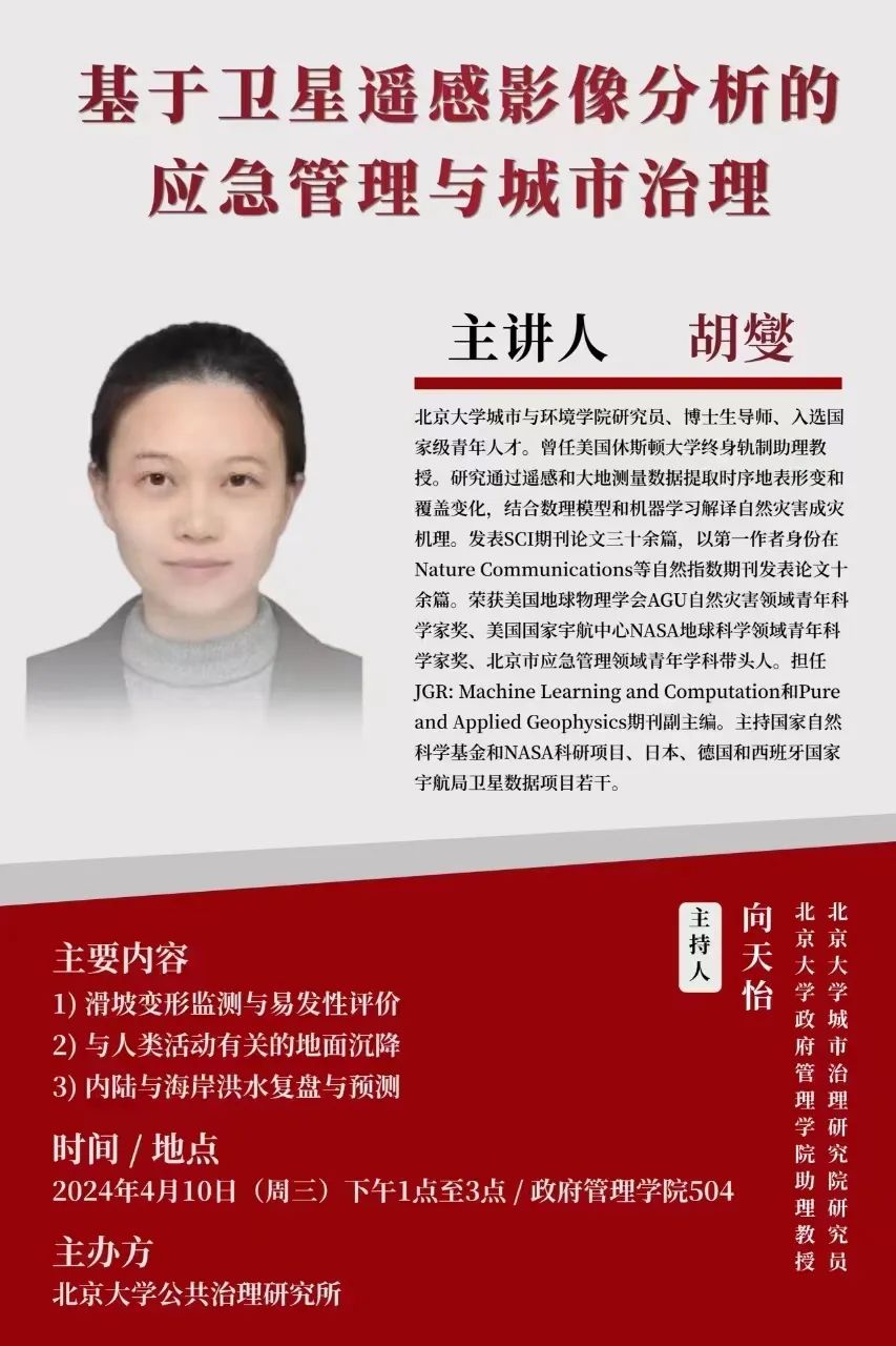 预告【北大公共治理讲座】胡燮 | 基于卫星遥感影像分析的应急管理与城市治理