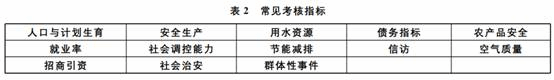 这样,中央和地方之间建立起两种并行的激励方式:一个是鞭子,即预期性指标;另一个是缰绳,即约束性指标。中央既用经济表现等预期性指标来对地方进行激励,又用其他约束性指标来约束地方,必要时重启政治控制的手段,通过人事任命系统来改变地方政府官员所面临的激励和约束,为新政策的出台、贯彻和实施保驾护航。约束性指标被视作政府对社会的承诺,约束的对象不是企业,而是各级政府,特别是政府在提供公共服务、保护和使用土地等方面的行为。在这一揽子约束性指标体系中,我们可以列举出一些常见的项目(参见表2),如人口与计划生育、安全生产、用水资源、农产品安全、债务指标、就业率、社会调控能力、信访、节能减排等。一些指标是历史上沿用多年的,如计划生育指标,从20世纪70年代开始一直延续数十年;另一些指标较晚进入指标体系,如群体性事件