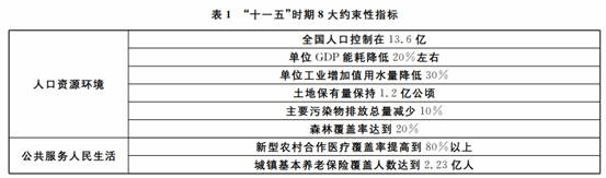资料来源:《中华人民共和国国民经济和社会发展第十一个五年规划纲要》,2006年3月。