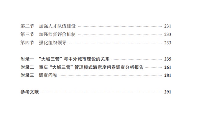 《重庆“大城三管”理论与实践研究》是北京大学公共治理研究所现代城市治理研究团队建设的阶段性成果,该书在对“大城三管”实践进行调查研究的基础上,遵循城市治理体系和治理能力现代化的逻辑框架,系统总结重庆“大城三管”的经验模式和实践贡献,深入挖掘“大城三管”的理论内涵,论证“大城三管”创新实践的合理性、可行性和合法性,并提出进一步深化“大城三管”的模式体系、实施步骤和对策建议,从而为打造可复制、可推广的城市治理重庆样板提供了理论依据。